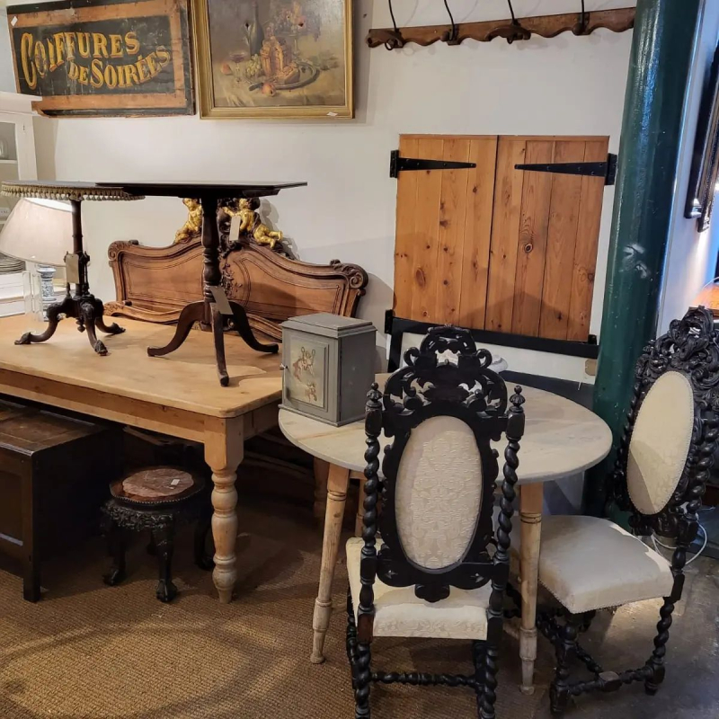 Antiques are spread wide in the warehouse area, up and down stairs, with large and unusual items being something of a speciality. The owners travel extensively around the country and across Europe to gather merchandise, so you will find a wide eclectic mix of period, vintage, and occasionally modern furniture. Always available are large farmhouse tables, desks, wardrobes, chests of drawers and leather sofas plus many more beautiful and constantly changing items, from the down to earth to the downright bizarre.